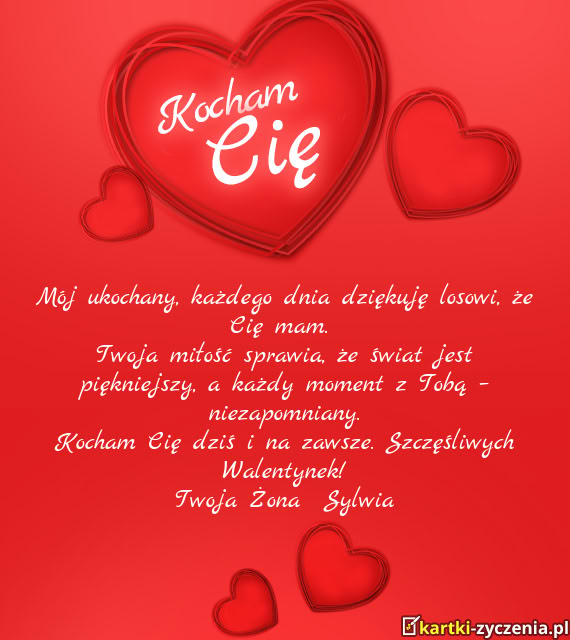 Mój ukochany, każdego dnia dziękuję losowi, że Cię mam - Gotowa kartka na walentynki